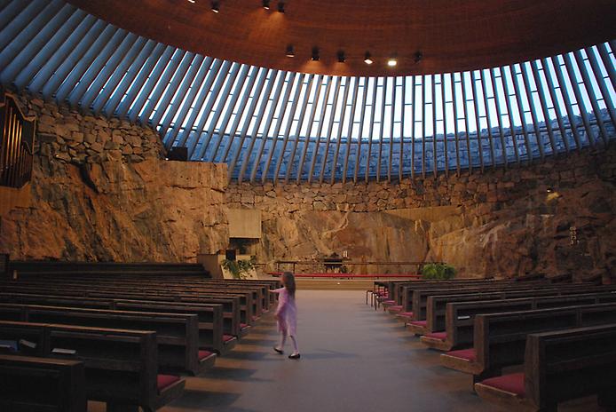 Церковь под названием Темпельяукио, или Горная церковь — невероятное сооружения в центре города Хельсинки, Финляндия. Здание было спроектировано братьями Тимо и Туомо Суомалайненами и открыто в 1969 году. Эта лютеранская церковь — одна из самых популярных достопримечательностей Хельсинки с более чем полумиллионами посетителей в год