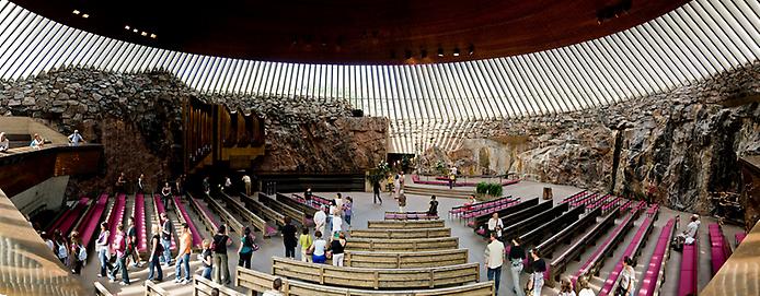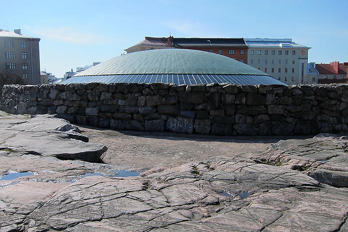 Церковь была построена в массивной скале естественного гранита. Архитекторы выбрали это местоположение в 1968 году, когда это была простая возвышенность, на 12 метров превышающая уровень улицы. Сердцевина этой скалы была извлечена с помощью взрывчатки и покрыта сверху большим медным куполом. Естественный солнечный свет проникает внутрь через 180 вертикальных окон, соединяющих гранитную стену и роскошный купол