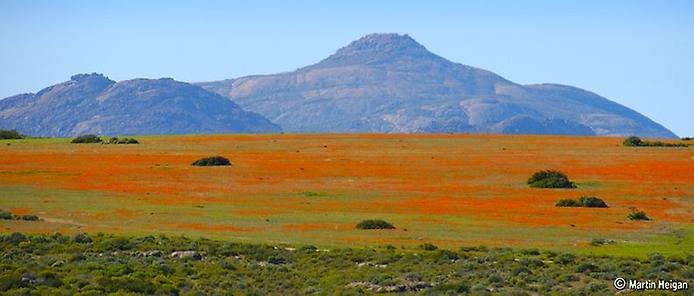 Этот период называют сезоном маргариток Намакваленда, когда оранжевые и белые маргаритки, как и сотни других разновидностей, окрашивают весь бесплодный пейзаж вокруг