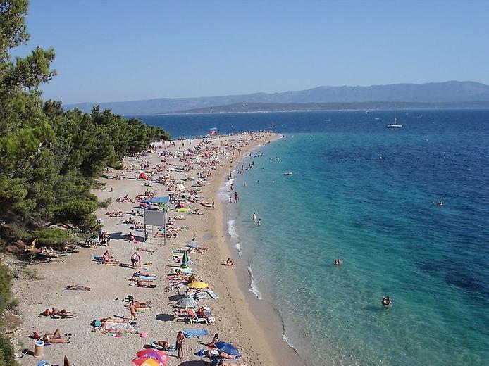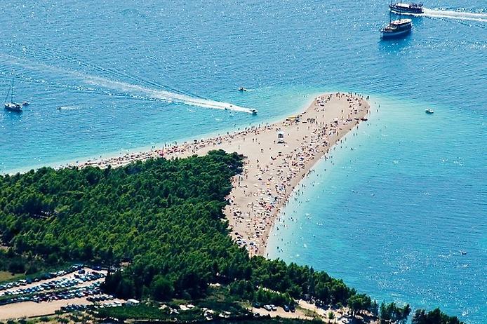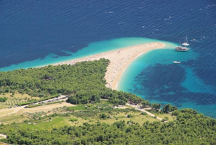 Золотой рог, который также называют Златни Рат — один из самых красивых пляжей Хорватии. Этот обширный пляж с золотым песком похож на рожок, вытянутый в море на 634 метра. В зависимости от направления ветра наконечник пляжа меняет свою форму и положение. Окруженный сосновым лесом и идеальным прозрачным морем пляж действительно является одним из лучших в мире