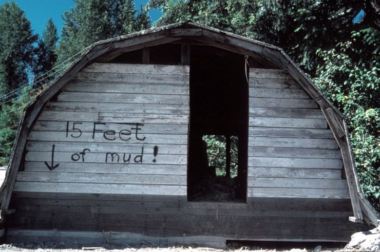 В результате 24 квадратных мили (62 квадратных километра) долины были заполнены лавиной развалин и грязевых потоков, 250 квадратных миль (650 квадратных километров) частных земель были серьезно повреждены и 61 человек погиб
