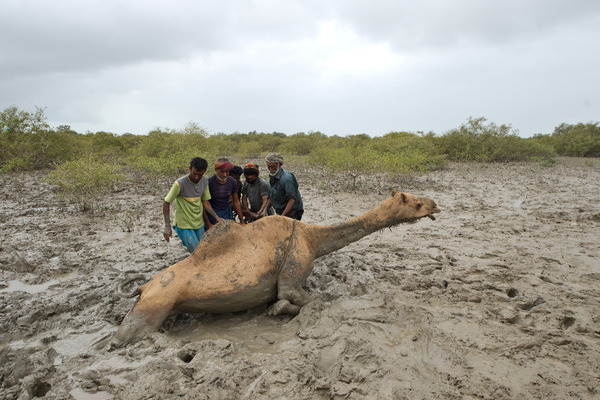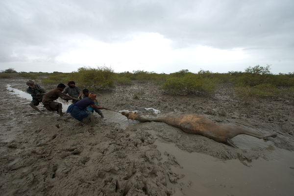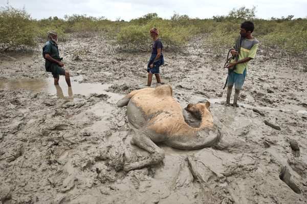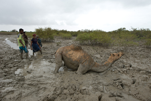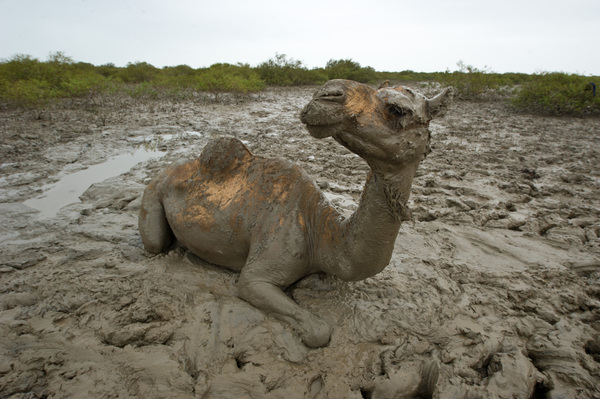 Конечно, плаванье не поможет этому верблюду выбраться из грязевой ловушки.