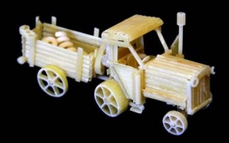 Сергей Пахомов, художник из Пермского региона России, нашел интересное применение макаронным изделиям. Складывая их, он создает миниатюрные модели автомобилей, самолетов, лодок и даже небольших городов.