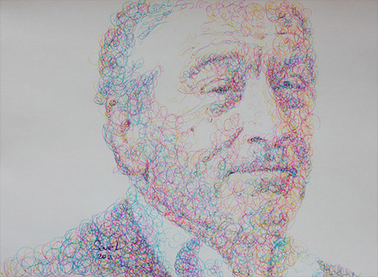 Техника создания работ знакома всем. Вы могли использовать ее расписывая ручку, или говоря по телефону и рисуя непонятные каракули. Но каракули этих людей превращаются в узнаваемые портреты знаменитостей. Попробуйте нарисовать что-то подобное, быть может, у вас тоже неплохо получится.