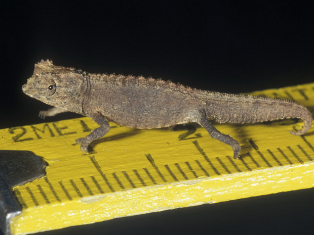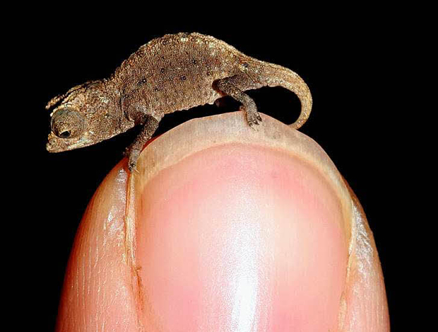 Самый маленький хамелеончик живет на Мадагаскаре. Его длина составляет 1.6 см. (это без хвоста).