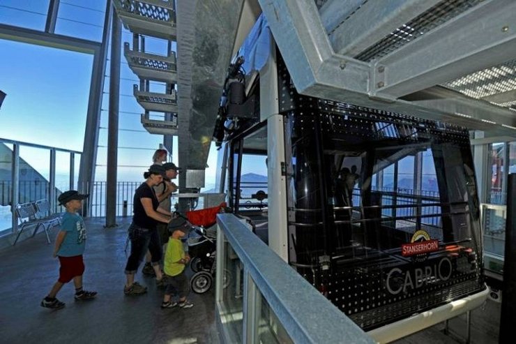 Швейцария представила новую канатную дорогу с двухэтажными кабинками близ города Люцерна. Это первое в мире подобное изобретение, которому уже дали название "Кабриолет" благодаря открытой верхней смотровой площадке. Канатная дорога ведет на гору Стэнсерхорн, поднимаясь на головокружительную высоту в 1.9 километров. За один раз кабинка перевозит 60 пассажиров на первой платформе и 30 человек на открытой верхней палубе.