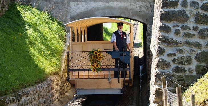Увлекательное путешествие начинается в деревне Стэнс, куда можно за 15 минут добраться на автомобиле, или на поезде из центра Люцерна. Базовая станция канатной дороги находится в 711 метрах над уровнем моря, к ней ведет один из самых старых функционирующих фуникулеров мира, построенный в 1891 году из дерева и кованного железа. Фуникулер доставляет пассажиров от деревни Стэнс к базовой станции Кабриолета, которая уже сама по себе является шедевром.