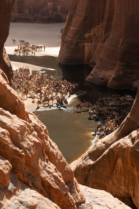 Что удивительно, в области пустыни Эннеди присутствует ряд водоемов под названием гуэлтас, самым популярным из которых является оазис близ города Фэд. Подробнее об оазисах в пустынях читайте в отдельной статье по ссылке. Озеро — это основной источник воды в пустыне, его часто посещает множество людей и бесконечные вереницы верблюдов. В озере также живут эндемичные крокодилы пустыни Сахара, которые питаются рыбой и навозом верблюдов.