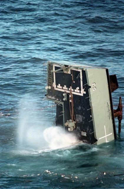 Окончательный всплеск, и все, что осталось от задней части корабля. Общественность не приветствует такие действия. Потопление кораблей выпускает множество токсичных веществ в океан, включая полихлорированные бифенилы которые представляют опасность для морской флоры и фауны и, следовательно для тех, кто все это потребляет. Мы уже писали об этом в статье о кладбище кораблей и других подобных статьях.