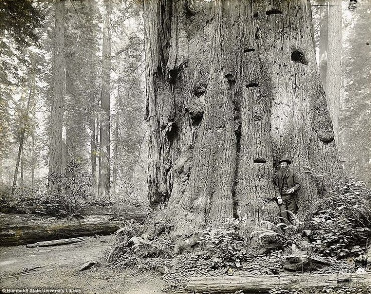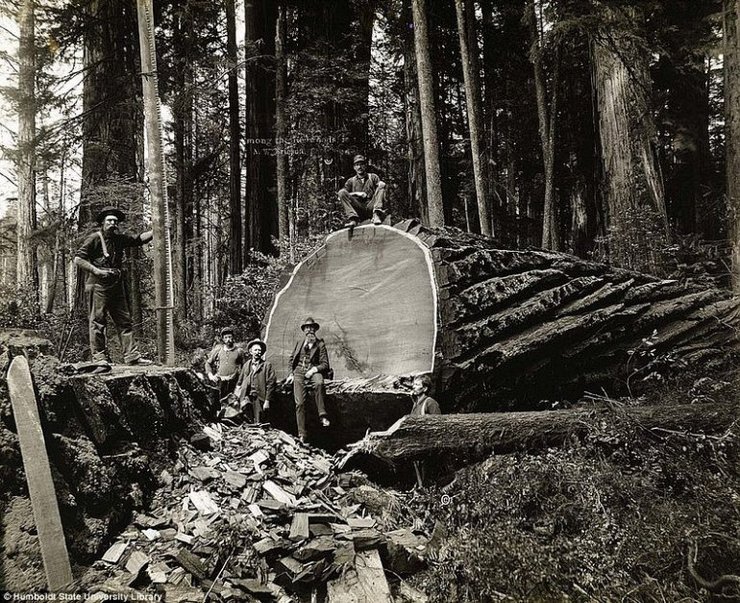 Этот ряд фотографий дровосеков и срубленных ими гигантских секвой был сделан в период между 1880 и 1920 годами в Калифорнии, когда заготовка леса и древесных материалов находилась на своем пике. Автор снимков — шведский фотограф А.В. Эриксон.