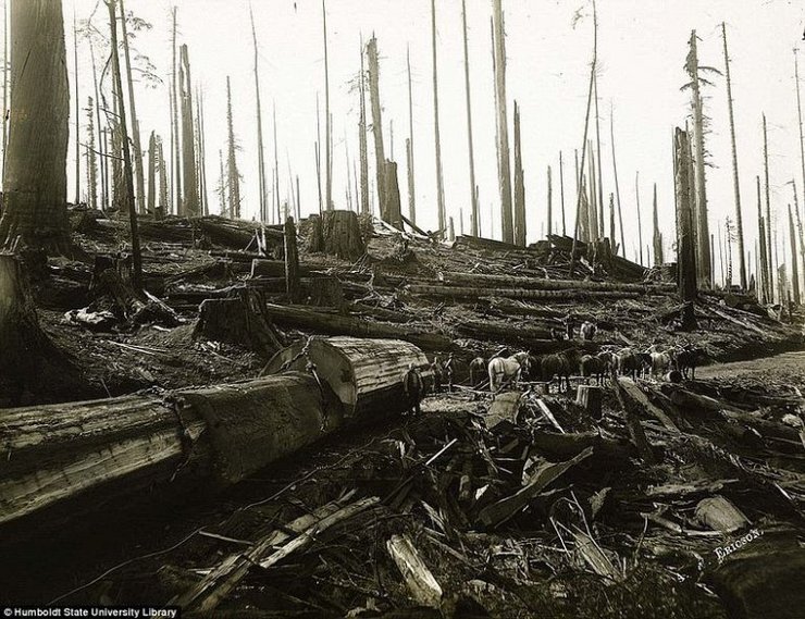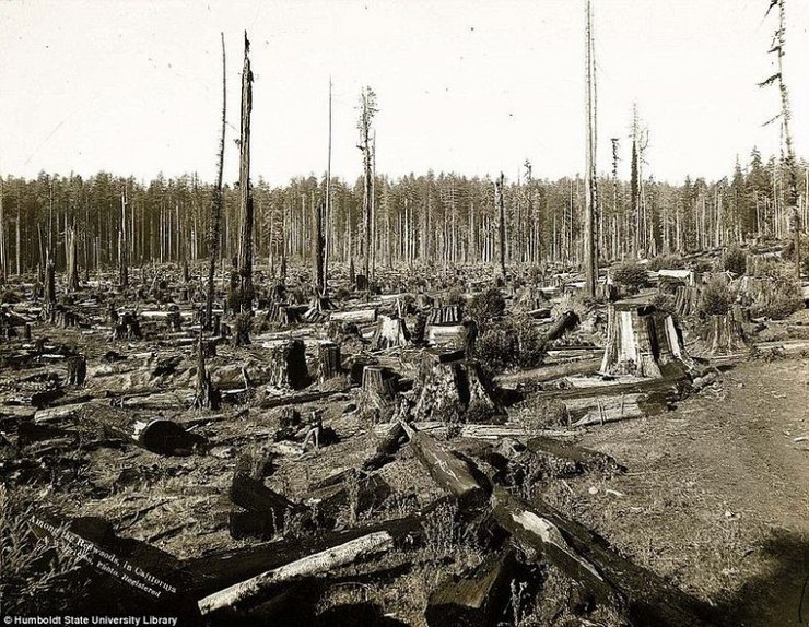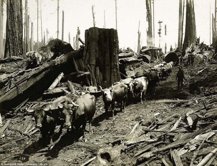 Когда Евроамериканцы заселяли западные территории в 1800-х, они нуждались в сырье для своих домов и для жизни. Вслед за расширением Америки следовала и коммерческая заготовка леса, которая стремилась не отставать от разъяренного темпа прогресса. Заготовка древесины очень быстро стала главной обрабатывающей промышленностью запада США. Больше всего при этом страдали многовековые гигантские секвойи, деревья долгожители, вырастающие до колоссальных размеров.
