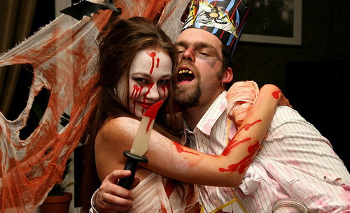 Отпугивать, кстати можно не только неординарным, сложным и ужасающим костюмом, но и безобразным исполнением незамысловатого костюма или сценического макияжа. Следует помнить, что много косметики – это еще не зловеще, хотя уже и страшно.