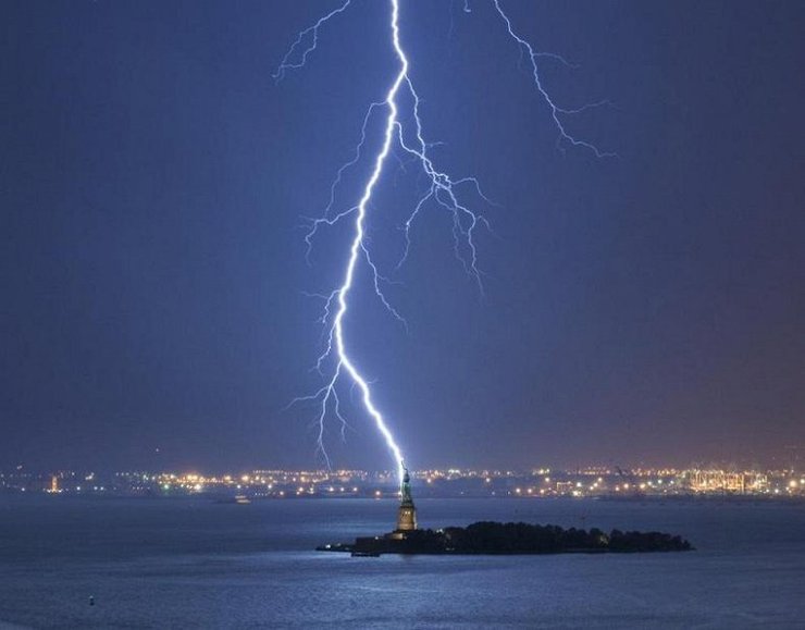 10. Удар молнии, угодивший прямо в Статую Свободы – Нью-Йорк (2010):