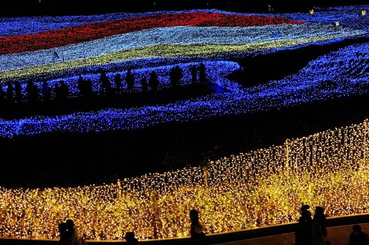 Расположенный в Кувана-Сити (Префектура Mie) Набано Но Сато, цветочный парк с садами и гигантскими оранжереями. Ежегодно в период с середины ноября до середины марта здесь происходит одно из самых прекрасных зимних шоу в Японии, включая знаменитый туннель света.