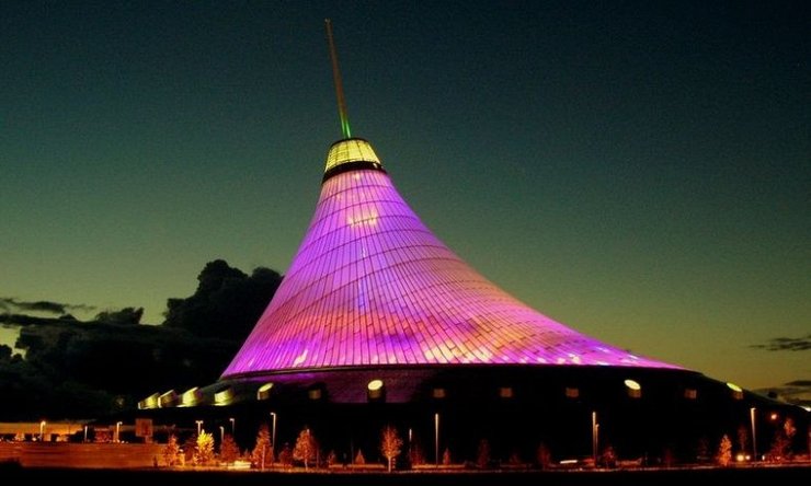 Открытый в 2010 казахским президентом Нурсултаном Назарбаевым, Хан Шатыр был описан как “последний проект тщеславия” все более и более деспотичного президента Казахстана (The Guardian).