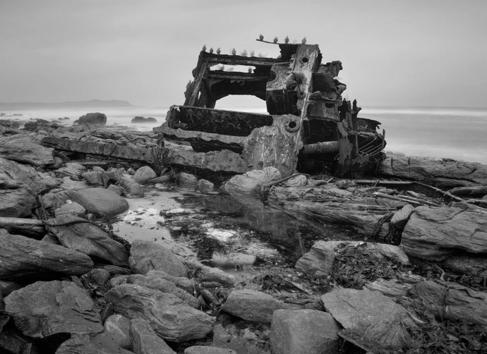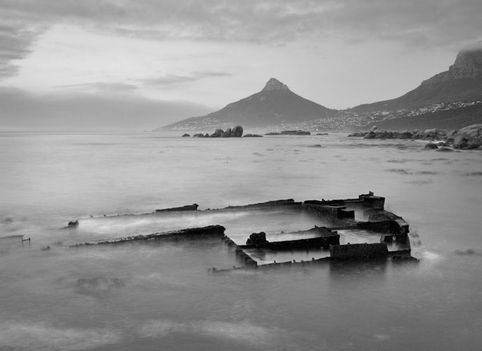 “Мыс Доброй Надежды на юго-западном конце Африки также известен, как Мыс Штормов, и в доказательство опасности этой береговой линии говорят многочисленные кораблекрушения. При помощи длинных выдержек я смог представить искусственное спокойствие в сценах и выдвинуть на первый план реликвии и останки крушений. Я сфотографировал эти десять пейзажей между Кейп Поинт и Мысом Роббена.”