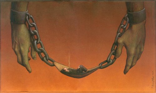 Павел Кучинский, талантливый польский художник создает удивительные карикатуры, связанные с современным обществом и жизнью в целом. Работы ярко показывают такие проблемы, как бедность, нищета, жесткость, экологические проблемы и войны.