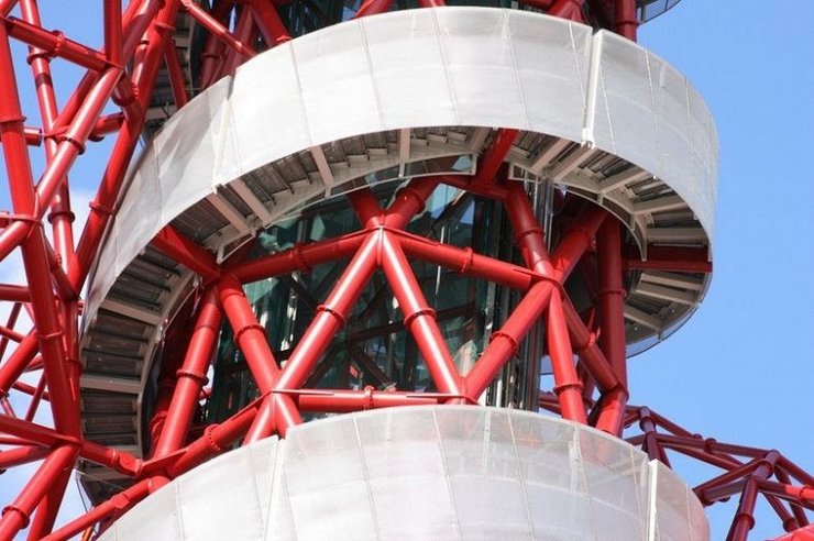 Конструкция Орбиты ArcelorMittal заняла 18 месяцев и потребовала 560 метров трубчатой красной стали, чтобы сформировать сверхструктуру решетчатого типа. Результат — интересный образец общедоступного искусства, состоящий на 60 процентов из 2,000 тонн стали из переработанных источников.