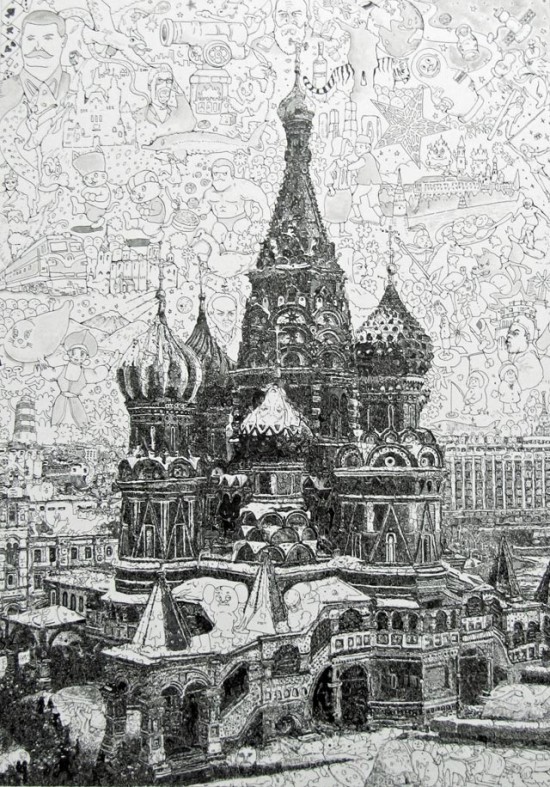 Токийская художница недавно создала серию рисунков международных достопримечательностей, которые на первый взгляд являются простыми графическими изображениями, но при более детальном рассмотрении обнаруживается бесчисленное количество развлекательных символов. Очевидно, художник имеет огромное терпение, которого хватает, чтоб заполнить каждый дюйм белой бумаги. Сагаки Кейта и его работы уже представлялись на LifeGlobe, здесь же следует продолжение.