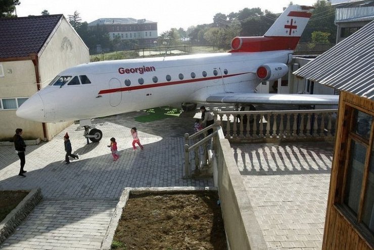 В грузинском городе Рустави старый, но полностью функциональный самолет Як 42 был преобразован в оригинальный детский сад. Директор Гари Чапидзе купил воздушное судно у Georgian Airways и принял меры, чтобы он был транспортирован в город Рустави, где были полностью обновлены внутренние части, замененные образовательным оборудованием, играми и игрушками. Он оставил инструменты кабины нетронутыми, таким образом, чтобы дети могли использоваться ими в качестве элементов игры. Здесь есть приблизительно 1,500 кнопок, которыми 15 маленьких посетителей детского сада с восторгом играют, подражая настоящим пилотам.