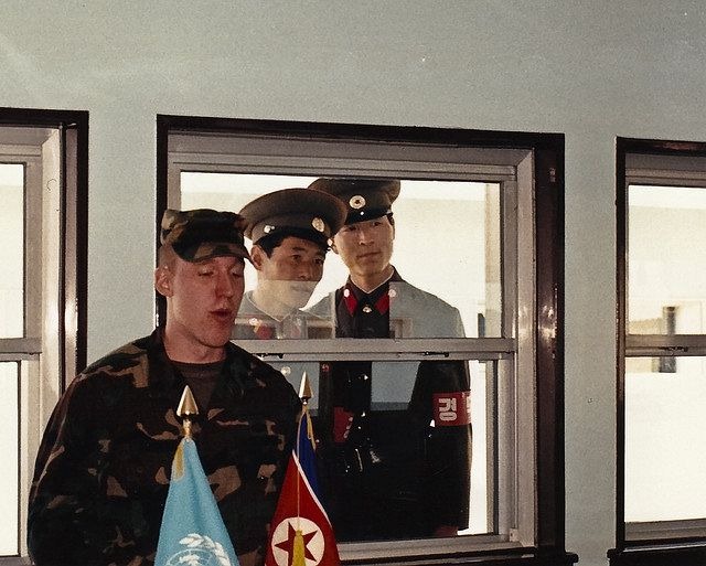 В одном километре к востоку от теперь пустынной деревни Joint Security Area (JSA) находится почти круглый участок земли, совместно охраняемый Югом и Севером, где эти две стороны иногда встречаются для обсуждений и перестрелок. Большую часть времени солдаты просто впиваются взглядом друг в друга через границу. Им не позволили пересекать линию установления границ в сторону друг друга начиная с так называемого Инцидента Убийства Топором в 1976, когда два американских солдата были убиты до смерти владеющими топором северокорейскими солдатами, поскольку американцы попытались подстричь дерево в DMZ.