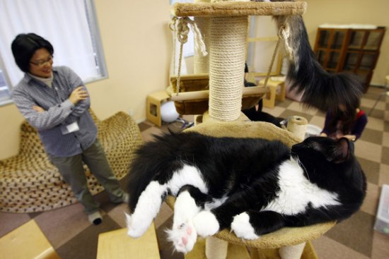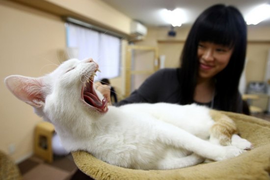 Многие японцы, которые любят животных, не имеют возможности завести домашнее животное из-за маленького жилого пространства, или же из-за сильной занятости. Именно для этих людей и было создано кошкино кафе. Теперь все желающие могут провести время в компании с мурлыкающей кошкой.