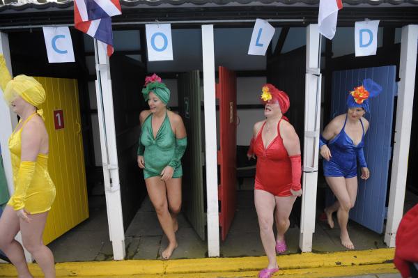 Эти яркие купальники и тюрбаны напоминают о 50-х годах, но все же это не путешествие во времени, а начало чемпионата по плаванью в холодной воде в бассейнах.