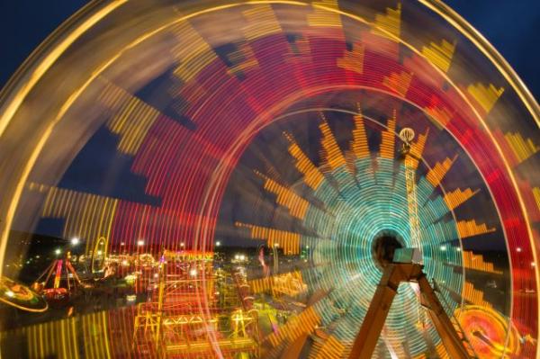 Съемка на длинной выдержке делает это колесо обозрения на ярмарке штата Канзас волшебным.
