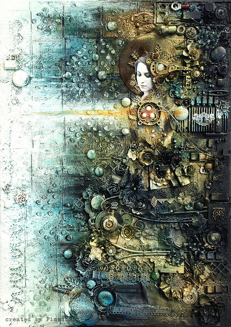 Для создания своих коллажей Анна использует не только детали компьютера. В ее работах можно рассмотреть множество элементов: от кнопочек, до засушенных бабочек. Детали для своих работ художница часто находит на барахолках, которые просто переполнены всевозможными «элементами для творчества».