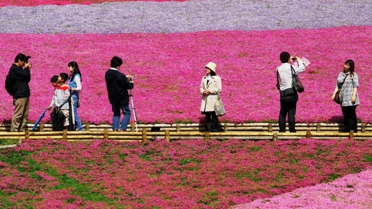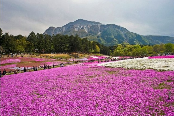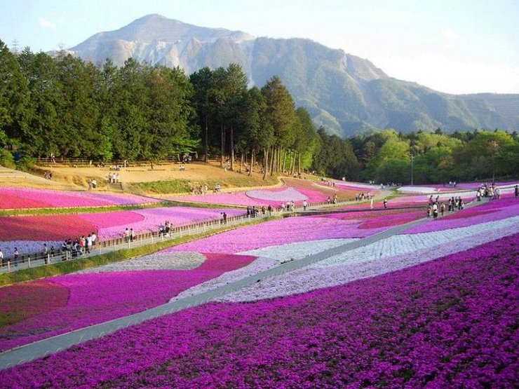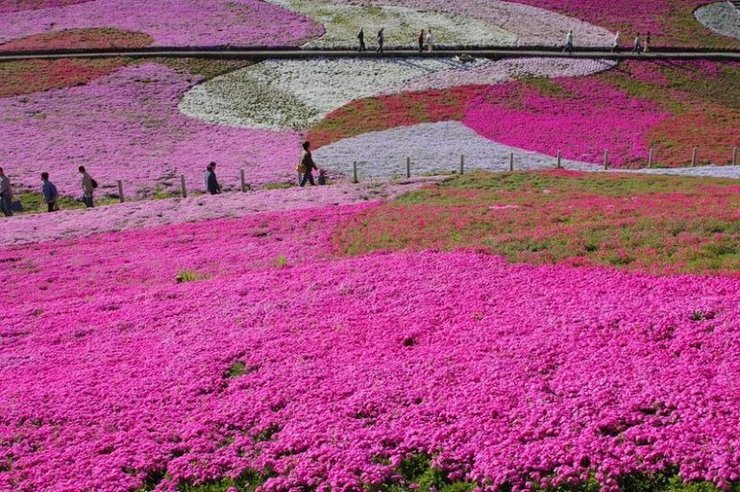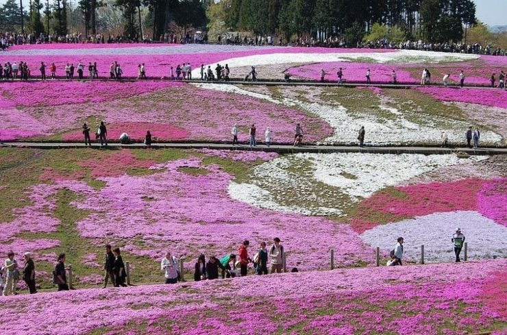Розовый мох, или shibazakura, цветок, который растет рядом с землей в искрящихся цветах пурпурного, розового и белого цвета. Сезон для розового мха начинается с конца апреля по середину мая, наступает после более известного сезона сакуры и персиков в Японии. Популярный способ насладиться красотой цветов розового мха — посетить розовый фестиваль мхов или другие многочисленные проекты, с ним связанные. Одно из лучших мест для посещения находится в парке Hitsujiyama близ города Чичибу в Префектуре Сайтама.