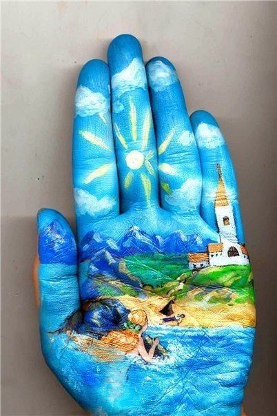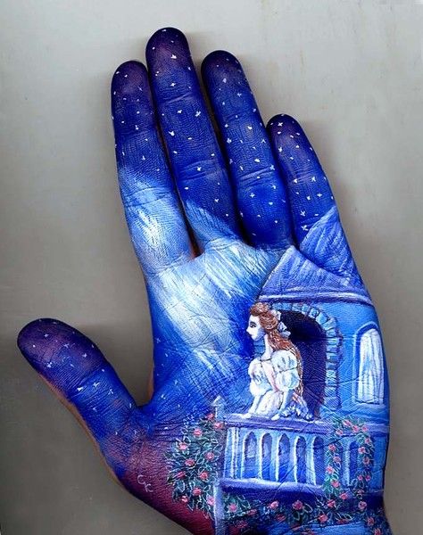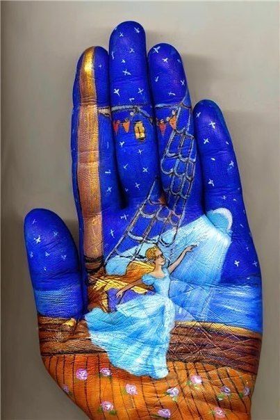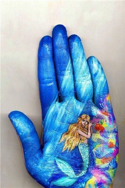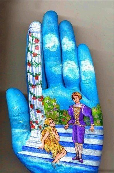 Масленые краски были заменены на акварельные, а вдохновение она черпала из сказок, которые читала своим маленьким детям. В результате такой комбинации и получились ее уникальные работы на ладонях, которые помогают маленьким фантазерам путешествовать в мире сказок и волшебства.