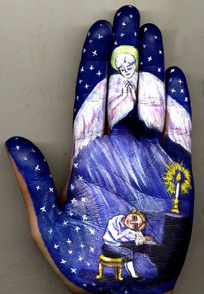 Вдохновленная бессмертными сказками мировых писателей, среди которых Ганс Христиан Андерсон, Антуан де Сент-Экзюпери, русская художница Светлана Колосова создает тематические шедевры прямо на теплых ладонях.
