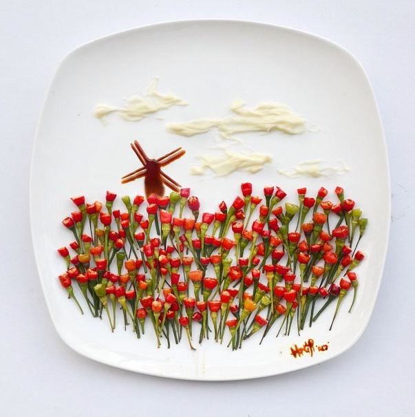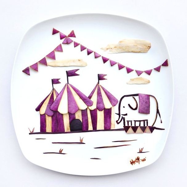 Совсем недавно она поставила перед собой задачу создать новое художественное произведение, используя только еду и продукты. “Мой творческий опыт с едой помог мне выдвинуть пределы своего творческого потенциала, вынуждая меня производить новые проекты каждый день в большом количестве. Это научило меня не слишком серьезно относиться к тому, что я делаю, но также и уделять внимание деталям и работать в пределах границ очень небольшой площади. Я училась резать, играть в кости, варить, готовить…, кто думал бы, что я буду нуждаться в этом для своего искусства!“ — говорит Хонг Юй.