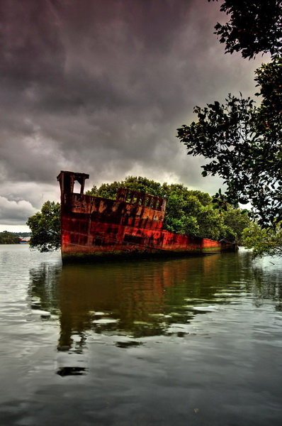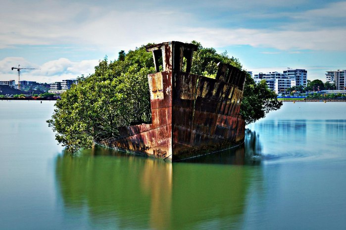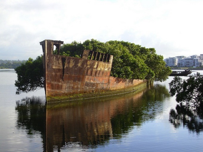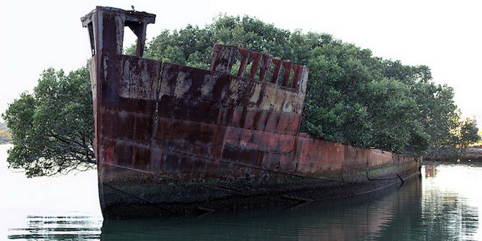 За годы простоя на нем разрослись мангровые деревья, образовавшие целые заросли.