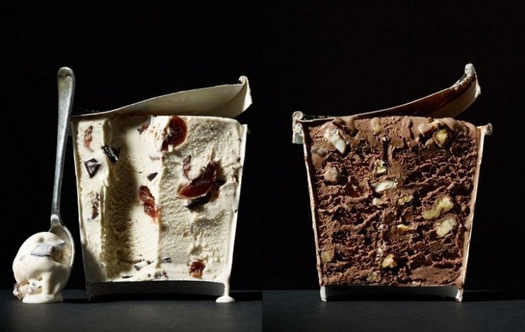 Нью-йоркский продовольственный фотограф Бет Гэлтон, вместе со стилистом Шарлоттой Омнес, сделали эти удивительные фотографии различных блюд, включая лапшу, корн-доги, и даже чашку кофе, в разрезе на половину. Гэлтон воздержался от цифрового объединения изображений, вместо этого полагаясь на стробы, чтобы заморозить действие.
