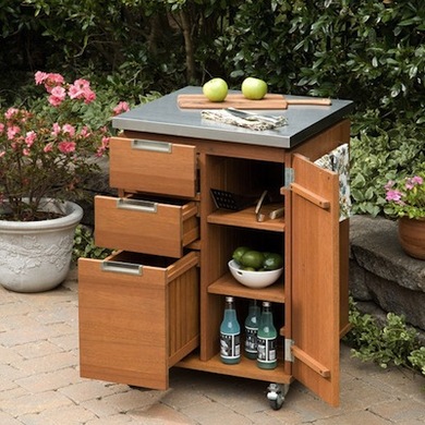 Когда на улице теплеет, многие предпочитают готовить барбекю, или другую еду на открытом огне. Именно для такого занятия подобный столик для обслуживанья будет очень полезен. На нем можно готовить и подготавливать к жарке на огне, а множество отделов позволяет вывести на улицу сразу все необходимые продукты и посуду.
