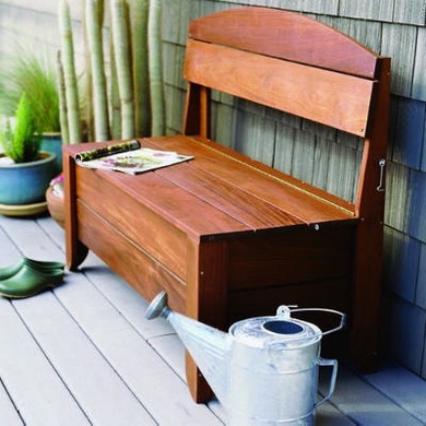 На первый взгляд – это самая обыкновенная скамейка, на которую можно сесть и насладиться видом прекрасного сада. Однако внутри этой скамейки есть пространство, куда можно сложить шланги перчатки, садовую обувь и другие садовые инструменты.