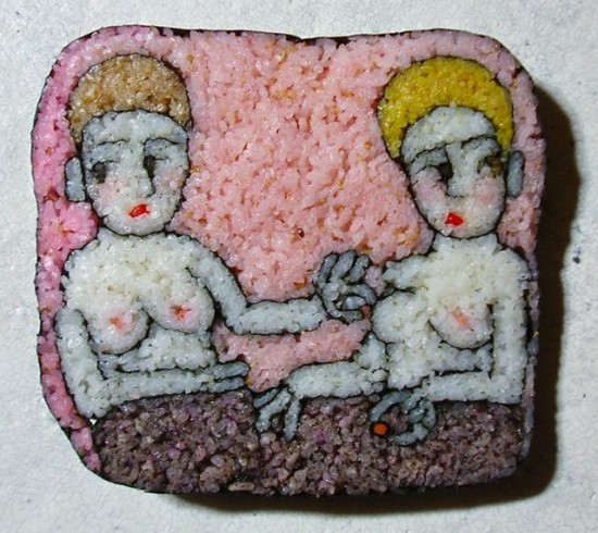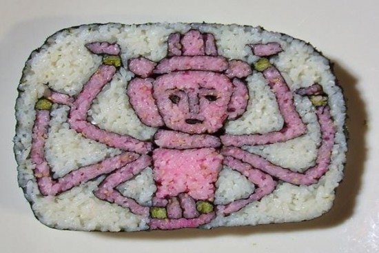 Токийская художница Такайо Киота использует суши в качестве холста для своего искусства. Верите. Или нет. Она никогда не знает точно как будут выглядеть ее съедобные произведения искусства. Такайо полагается только на визуализацию, при размещении мастерски окрашенных зерен риса внутри ролла.