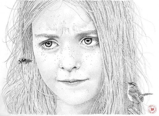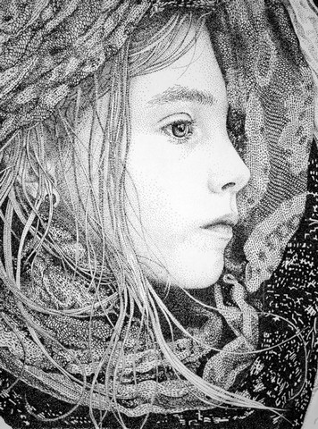 Вооруженный стальными нервами, художник Пабло Руис Хурадо создает невероятно детальные портреты, нанося тысячи крошечных точек на белый холст. Говоря о своем творческом подходе, он объясняет: «С творческой концепции, основанной в первую очередь на представлении человека, я стараюсь рассказать историю главного героя через минималистское виденье. Моя нынешняя работа фокусируется на импрессионистской технике — сложной, но очень точной».