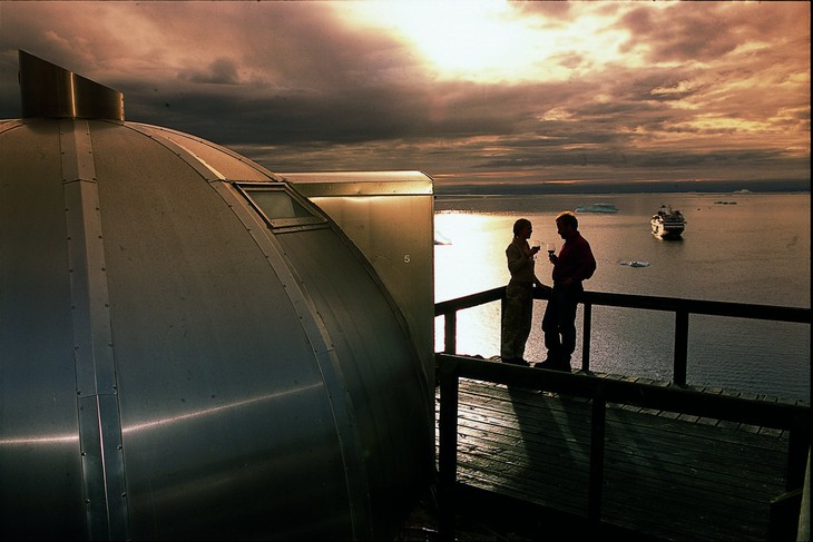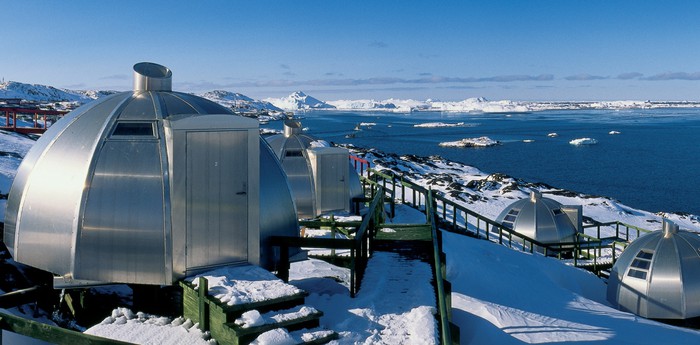 Расположенный в заливе Диско в Гренландии, отель предлагает большое количество развлечений. Среди них большой популярностью пользуются сани с собачьей упряжкой, которые провезут Вас через деревню красочных деревянных зданий. По прибытию в отель Arctic Вас будет ожидать восхитительный арктический ужин из мяса тюленя и северного оленя, картофеля и тушеных овощей. Комнаты для гостей — смесь датской элегантности с мебелью из светлой древесины и мягкими тканями. Если Вы хотите испытать эскимосский образ жизни, то можете остаться в одном из восьми домов иглу. Стоит также добавить, что залив доступен только по специальному дощатому настилу.