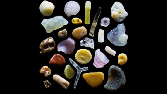Эти фотографии даже более удивительны, чем фото снежинок. Даже если сама снежинка уникальна, в целом они следуют общей идее, созданы из одного материала. Снежинку можно легко узнать на фотографии. Песчинки выглядят как случайный ассортимент предметов. Скорее всего вы никогда бы не догадались, что это песчинки.