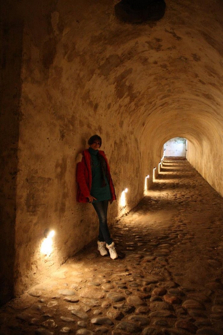 Походив по величественному замку, посмотрев покои мы отправились в подземелье. Подземелье слабо освещается, поэтому при входе продают фонарики. Здесь коптят керосинки, сыро, таинственно. Когда- то во время военных действий солдаты сидели здесь в осаде. У них было много пива и картошки. В подземелье они ее варили, да так прокоптили подземелье, что до сих пор ощущаешь запах картошки.