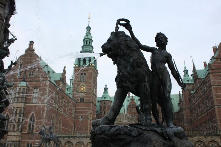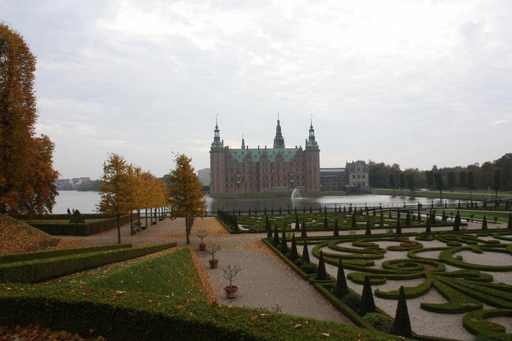 Фредериксборг стоит на трех островах озера. Надо сказать, что для яркости цвета озера были завезены сюда из Франции специальные водоросли.