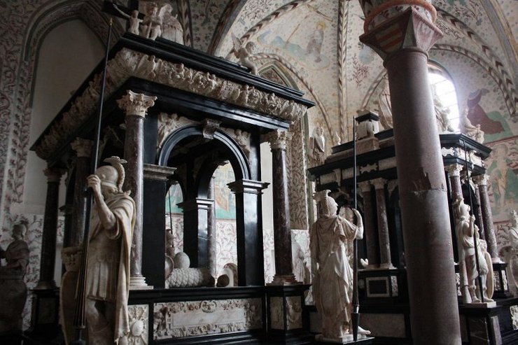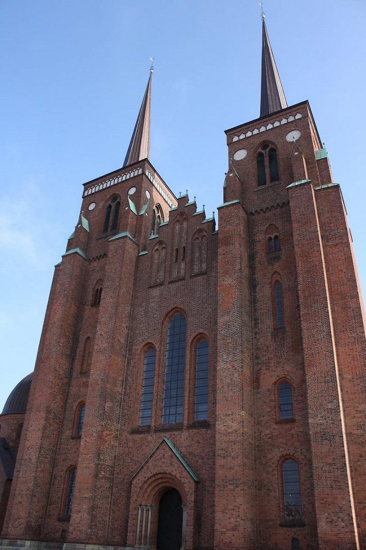 Вообще древняя столица Дании – город Роскилле. Там находиться самый главный собор, в нем располагается усыпальница всех датских королей. Туда то мы и отправились. Собор в Роскилле очень величественный и статный. Кстати, он полон не только датской историей, но и русской. Здесь была захоронена русская императрица Мария Федоровна супруга Александра III. Вскоре ее прах перевезли в Санкт-Петербург и захоронили в Петропавловке.