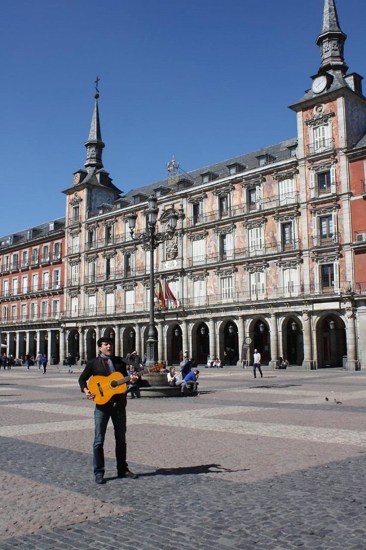 Пока мы стояли и восхищались площадью появился уличный певец, он ударил по струнам своей гитары, раздалась прекрасная испанская мелодия . Настолько было потрясающее пение, что не хотелось уходить.