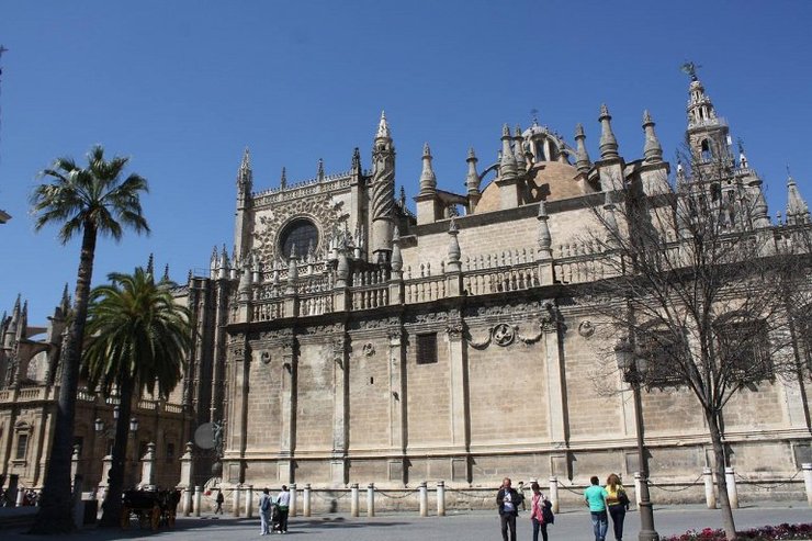 В Севилье находиться самый большой в Европе собор. Строительство, которого велось 150 лет, начиная с XIII. Поражаешься его монументальности и убранству. К сожалению, знаменитый алтарь искусной работы был на реконструкции, что сильно огорчило меня. Мы побывали возле гробницы Колумба. Ученые спорят до сих пор, кто же похоронен здесь, Колумб или же его сын.