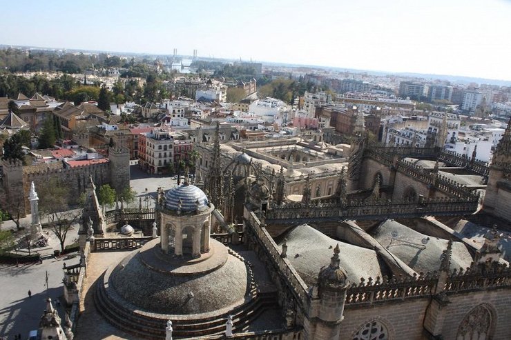 Взобравшись на колокольню Хиральда (90м), открывается потрясающий вид Севильи. Когда-то колокольня была минаретом бывшей мечети, а по пологому пандусу муэдзин взбирался на ослике.