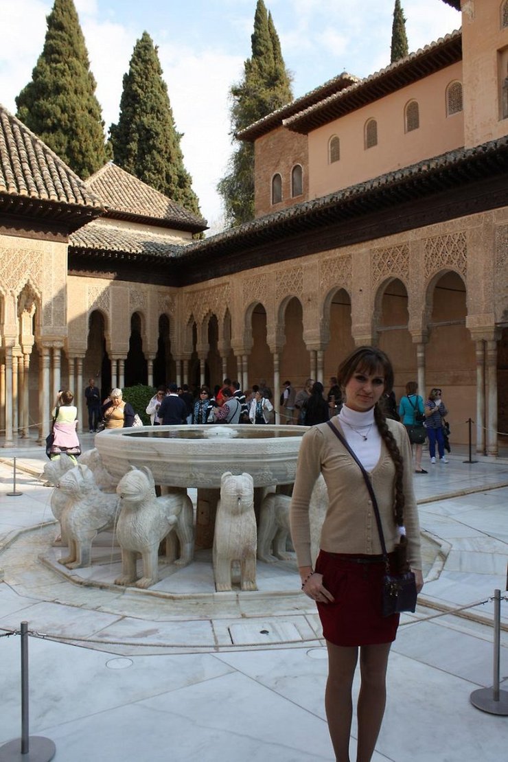 Поражает знаменитый Львиный дворик, вокруг которого ажурные аркады, а потолки окаймлены сталактитовым фризом.