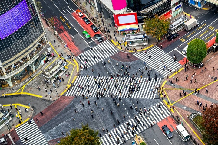 Танец Барнса впервые появился в Японии в 1969. В то время как США с Канадой медленно избавлялись от такой транспортной системы из-за неэффективности, в Японии она лишь набирала популярность. Сегодня в стране насчитывается более 300 таких пересечений, включая легендарный Сибуи В Токио. Путешествие в Токио будет неполным без посещения перекрестка Сибуи. Но если вы не готовы стать непосредственным участником этого потрясающего круговорота, то можете наблюдать за ним издалека. Один из лучших видов открывается из окна на втором этаже Starbucks, в здании через улицу на северной стороне перекрестка.