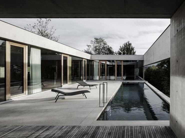 Бассейн в особняке House of Yards открывает прекрасные виды на Рейнскую долину в Австрии. Модный нынче стиль под названием "инфинити" позволяет обеспечить самый шикарный вид прямо из бассейна, когда гладь воды буквально сливается с горизонтом.